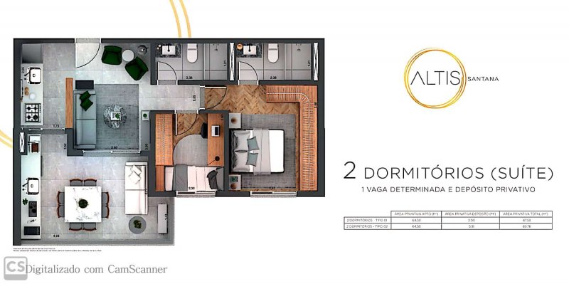 Unidades: 67,58m2 e 81,81 m2. Com mais metragem do depósito privativo.