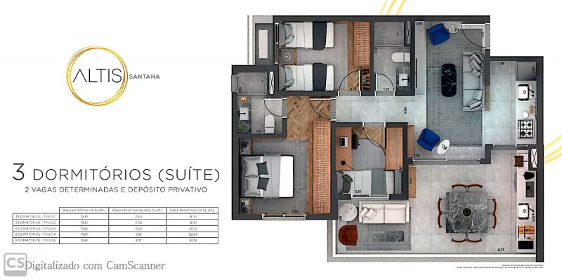 03 dormitórios - Tipo 02 - 78,81 m2 - Depósito Privativo - 3,00 - Área Privativa - 81,81 m2